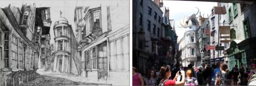 △奧蘭多環(huán)球影城“哈利波特的魔法世界”手稿與實(shí)景比對(duì),凸顯匠心精神