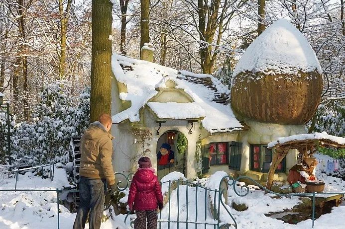 △位于荷蘭卡茨赫弗爾鎮(zhèn)的艾夫特琳主題公園中經(jīng)典包裝造景,智慧樹與矮人小屋