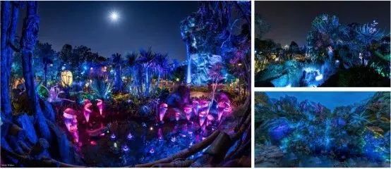 △潘多拉夜景,大量的發(fā)光植物包裝,采用了很多LED與透光樹脂造型的組合工藝