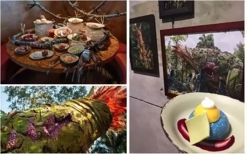 ③另外一點(diǎn),主題氛圍的打造要集合更多的內(nèi)容,紀(jì)念品商店中的商品,餐廳中的美食,雖然不屬于主題包裝范疇內(nèi),但都可以提升樂園的主題氛圍。阿凡達(dá)世界中的餐廳甜點(diǎn)與飲品,第一時(shí)間就讓人聯(lián)想到電影中的潘多拉星殖民地農(nóng)場(chǎng)中生產(chǎn)的外星水果,不自覺的回到場(chǎng)景中去。